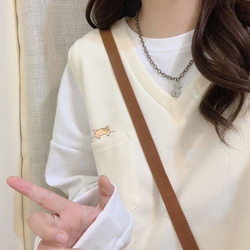韩版学院风少女休闲宽松牛仔翻领小狗刺绣长袖套头卫衣女学生秋装