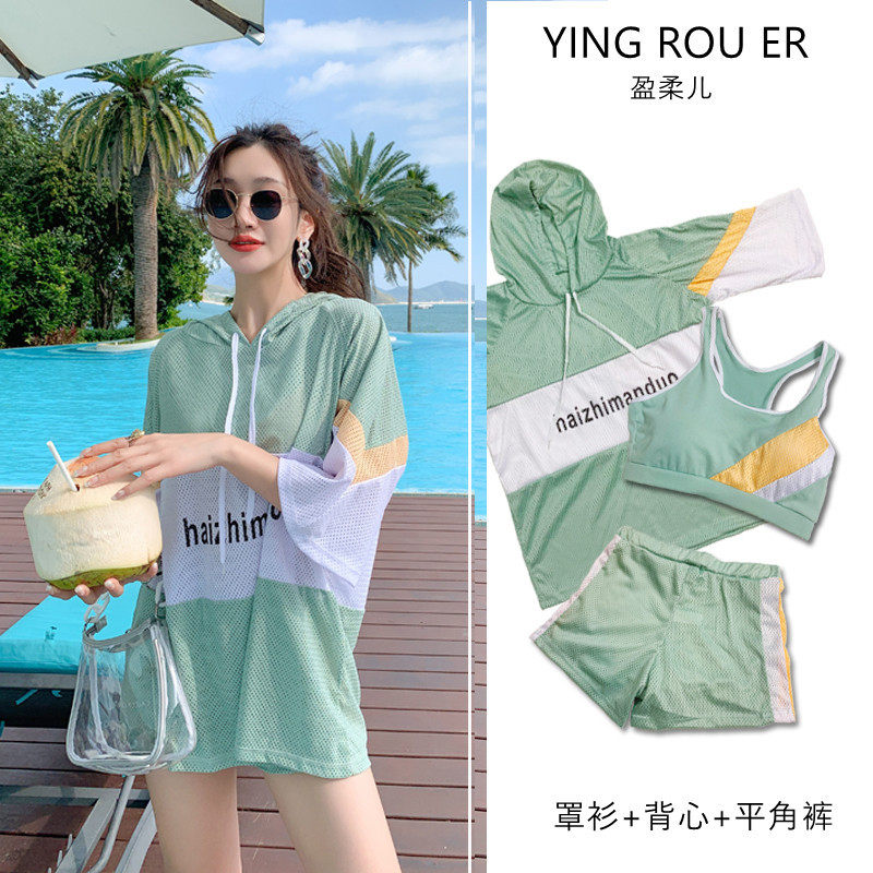 2022网红爆款韩版分体泳衣女夏学院风长袖N运动三件套保守学生泳