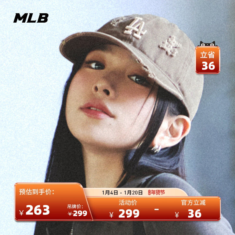【自营】MLB美职棒运动帽男女情侣帽刺绣LA鸭舌帽帽檐做旧棒球帽