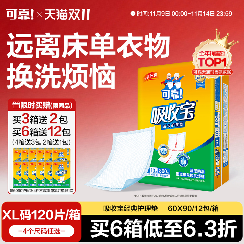 可靠吸收宝成人护理垫60x90老人用一次性隔尿垫120片尿不湿产妇垫