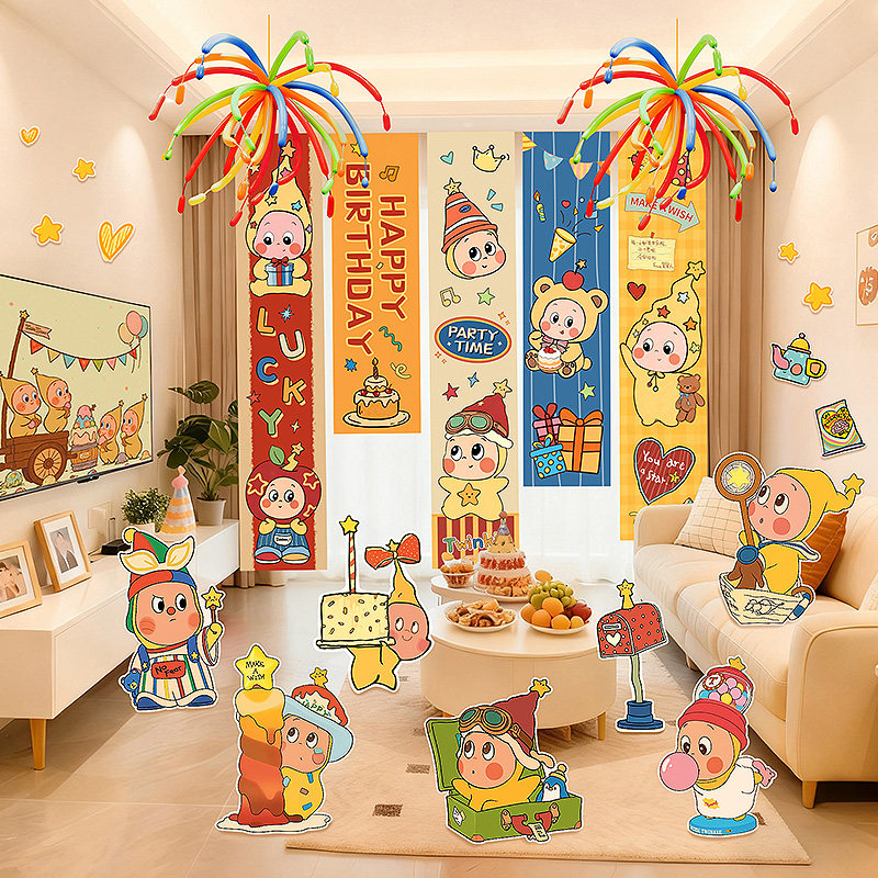 生日快乐仪式感小女孩周岁布置儿童派对在家场景装饰氛围气球挂布