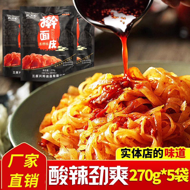 正宗擀面皮陕西宝鸡岐山西安特产小吃红油麻酱凉皮速食食品面拌面