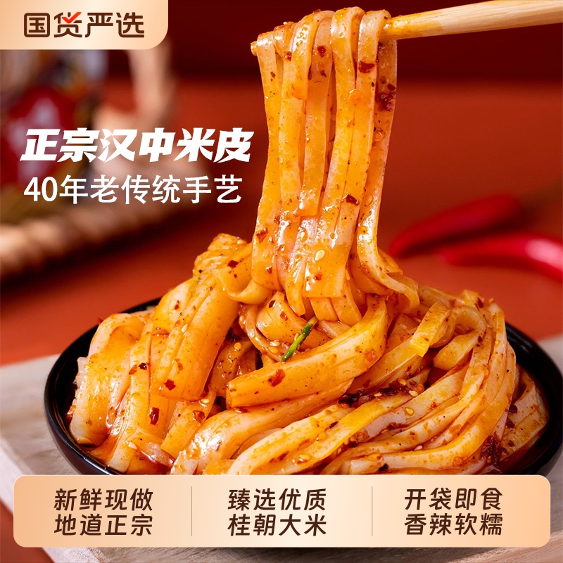 汉中米皮开袋即食陕西凉皮秦镇热米皮红油特产速食小吃香辣味正宗