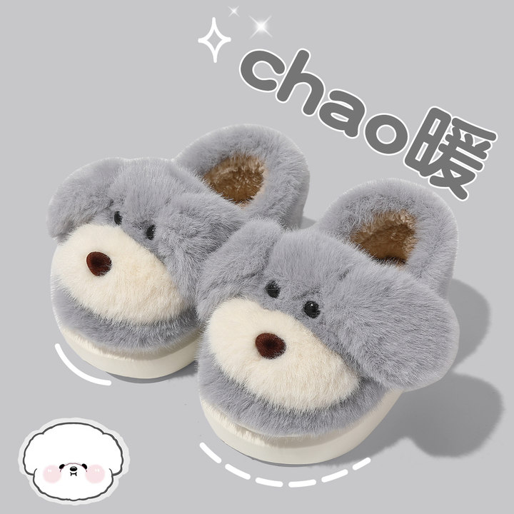 毛毛包跟拖鞋男女款西高地潦草小狗厚底棉鞋可爱学生保暖防滑秋冬