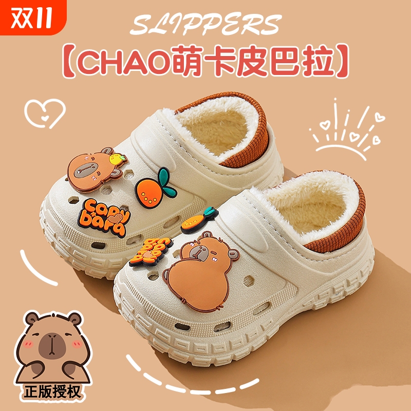 卡皮巴拉儿童棉拖鞋男童冬季卡通可爱防滑室内亲子宝宝包跟拖鞋女