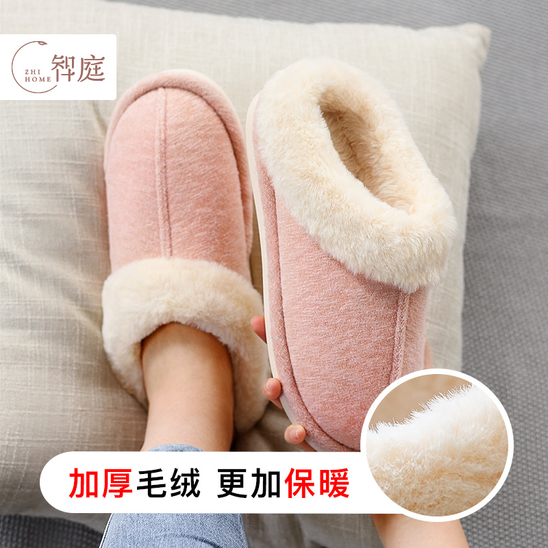 智庭冬季包跟拖鞋女男士毛绒厚底家用室内防滑秋冬冬天月子棉拖鞋