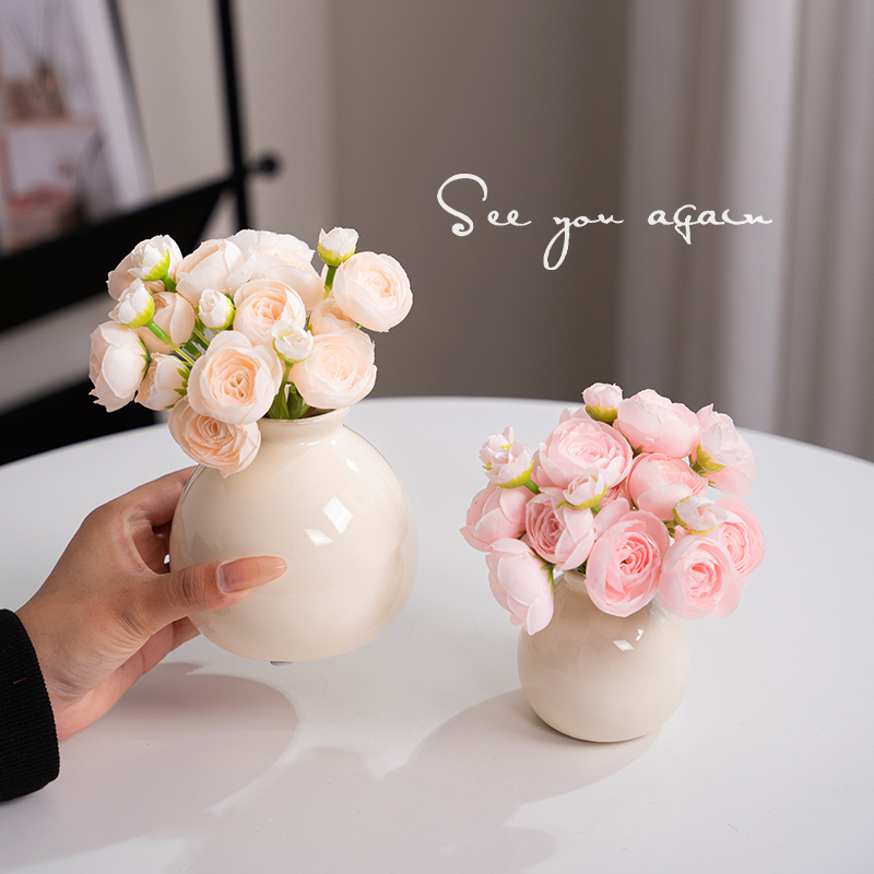 网红奶油风高级感陶瓷小花瓶迷你仿真花装饰摆件ins简约客厅插花
