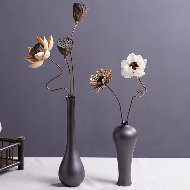 高级感中式复古黑色客厅桌面干花装饰摆件陶瓷小花瓶茶几禅意插花