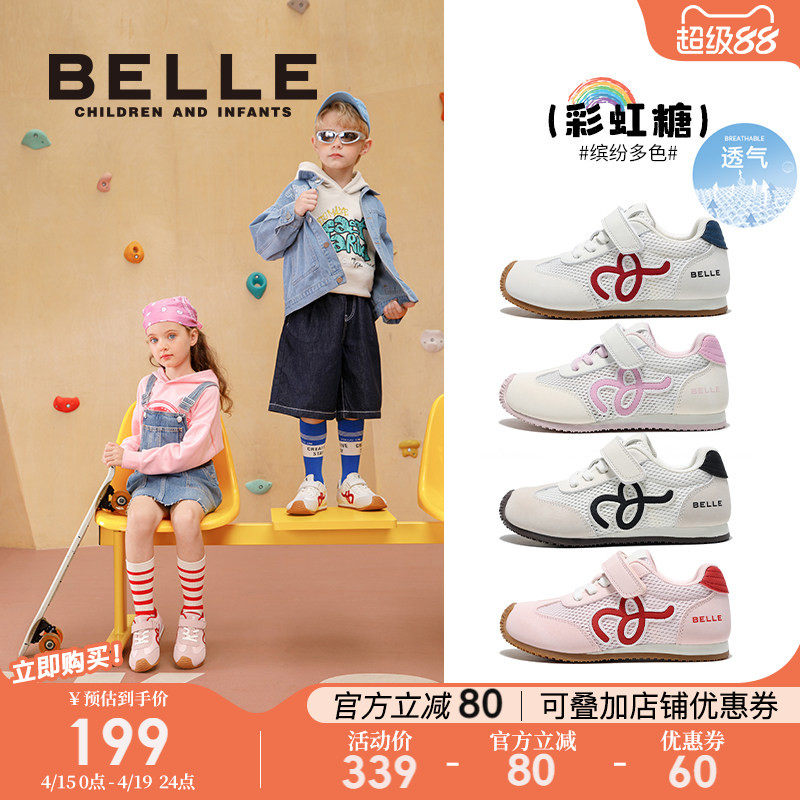 彩虹糖丨百丽童鞋儿童德训鞋女童运动鞋春季新款男童透气网面板鞋