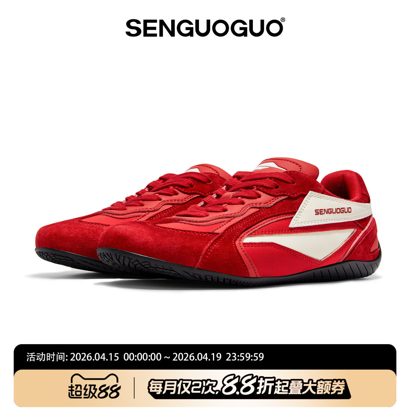 【侯明昊同款】森果果 赛车鞋/红色德训鞋女2026板鞋增高鞋子男