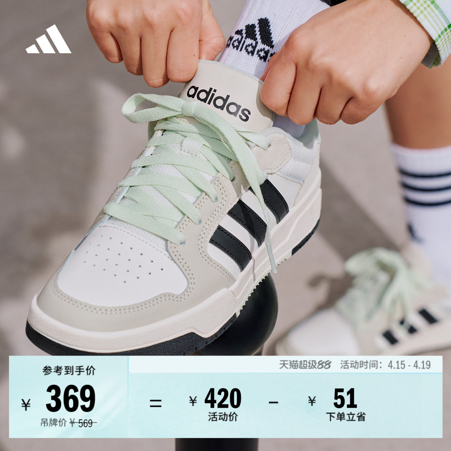 ENTRAP美式校园风运动鞋少年感复古篮球风板鞋男女adidas阿迪达斯