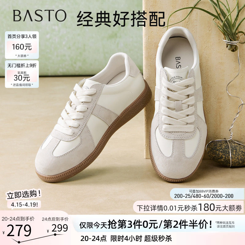 百思图26春商场新款经典厚底德训鞋小白鞋运动休闲板鞋女Q1007AM6