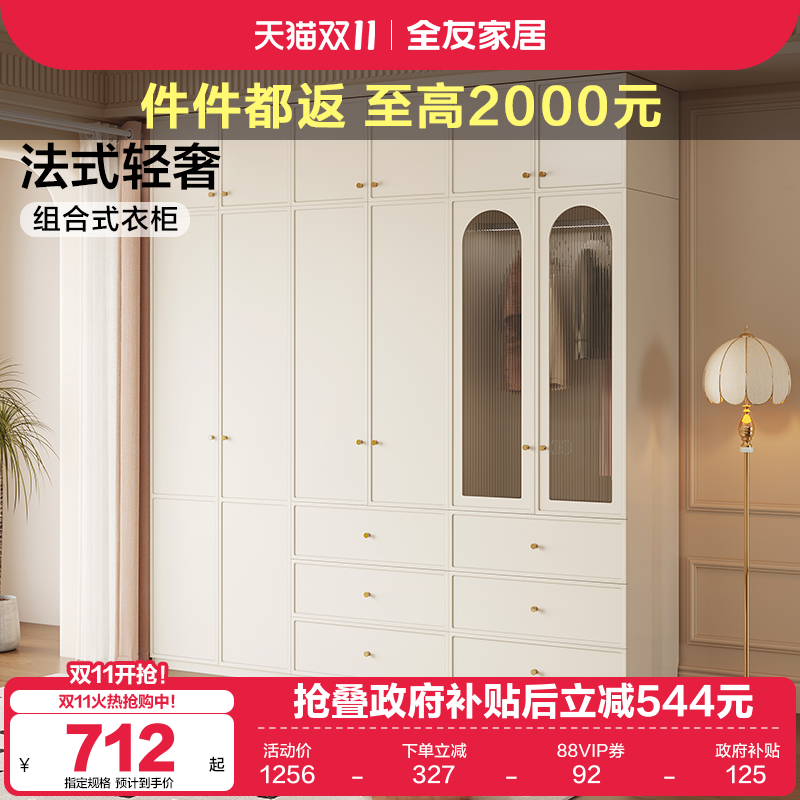 政府补贴全友家居奶油风衣柜卧室家用成品大衣橱法式轻奢收纳柜子