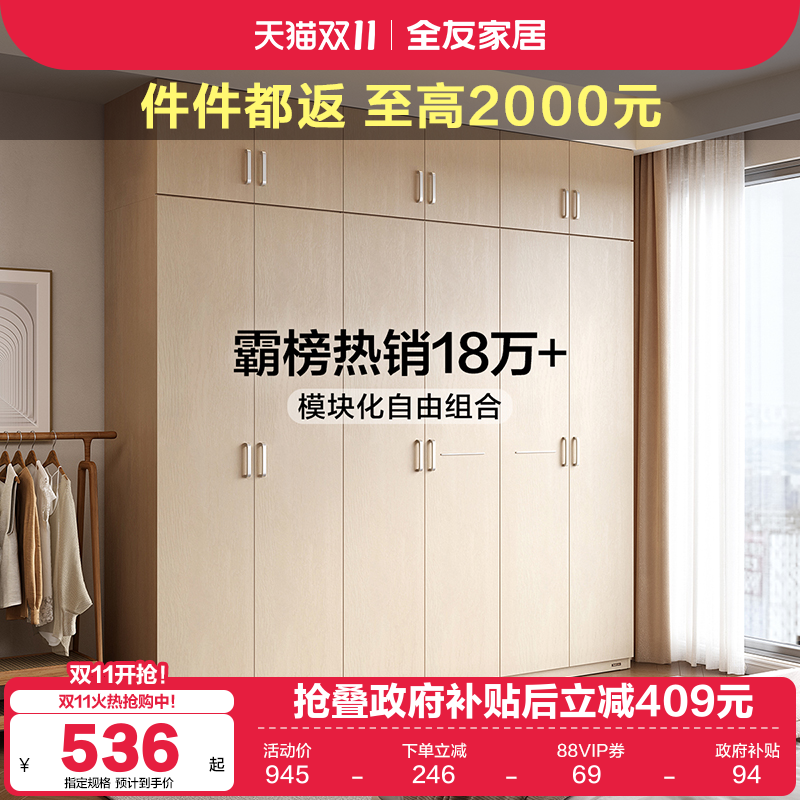 政府补贴全友家居简约现代组合衣柜卧室家用收纳成品大衣橱加顶柜
