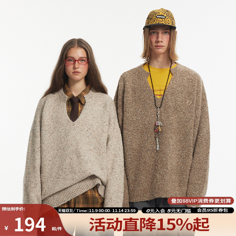江南先生NewJNXS美式v领套头圈圈纱毛衣男女秋慵懒宽松针织衫外套