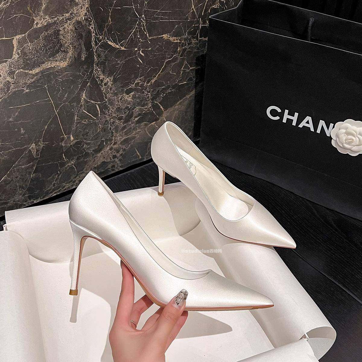香港气质缎面高跟鞋女2025春秋新款婚纱新娘鞋法式单鞋礼服伴娘鞋