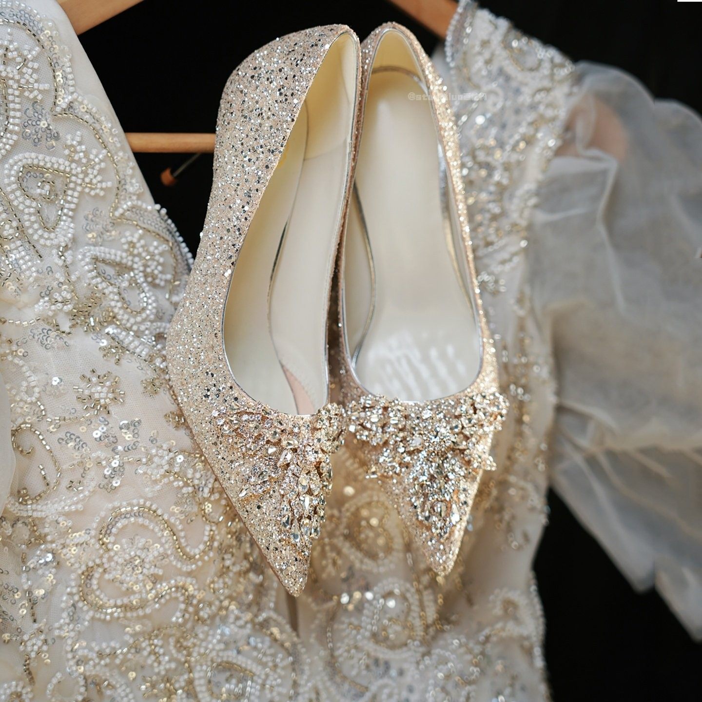 香港2025年婚礼鞋女士新娘鞋秀和婚纱双穿不累脚高端小众水晶高跟