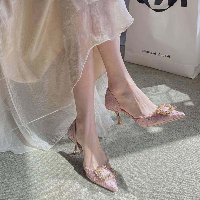 香港水钻中空高跟鞋婚鞋方扣仙女风尖头细跟新娘单鞋女高级感婚宴