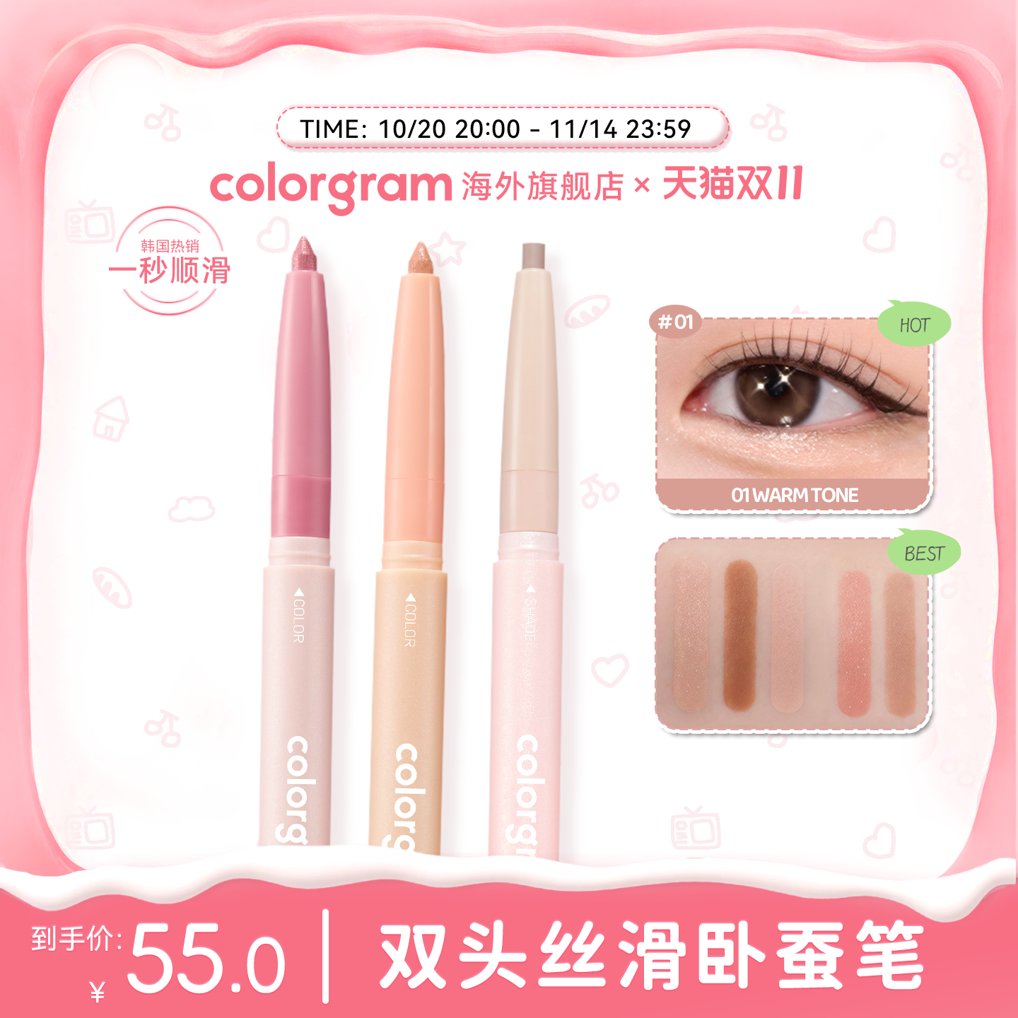 colorgram双头卧蚕笔高光提亮阴影下至韩国显色初学易上手