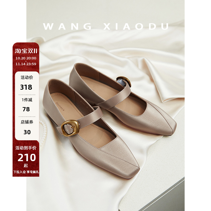 羊皮~法式方头单鞋女春季绝美芭蕾鞋复古一字扣粗跟旗袍玛丽珍鞋