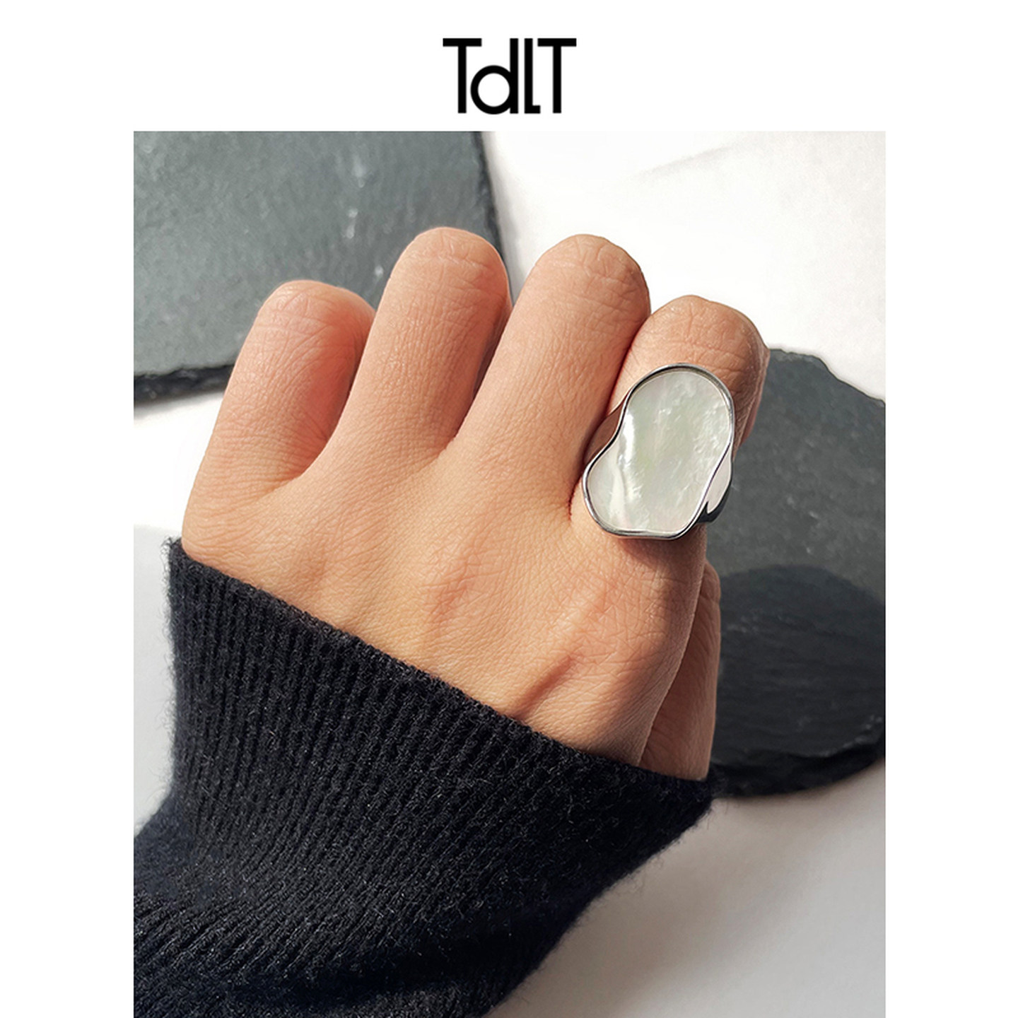 老钱风天然白贝母珍珠钛钢食指戒指女轻奢高级感小众设计夸张时尚