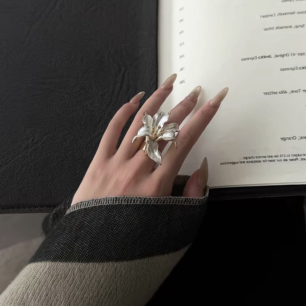 轻奢时髦撞色郁金香戒指女夸张小众设计感时尚精致指环白色食指戒