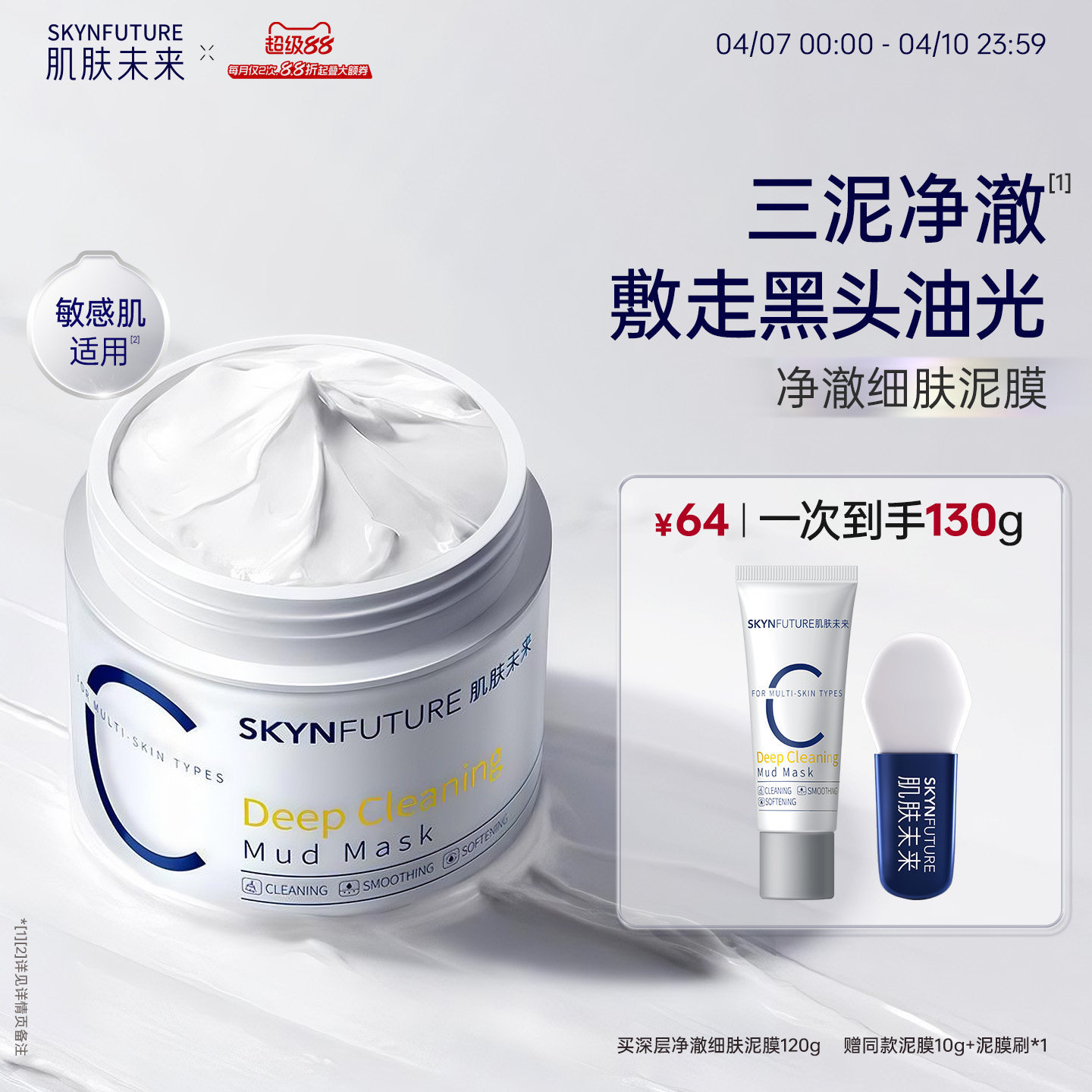 hfp果酸清洁面膜去黑头水杨酸涂抹面膜灰白泥深层清洁泥膜男女