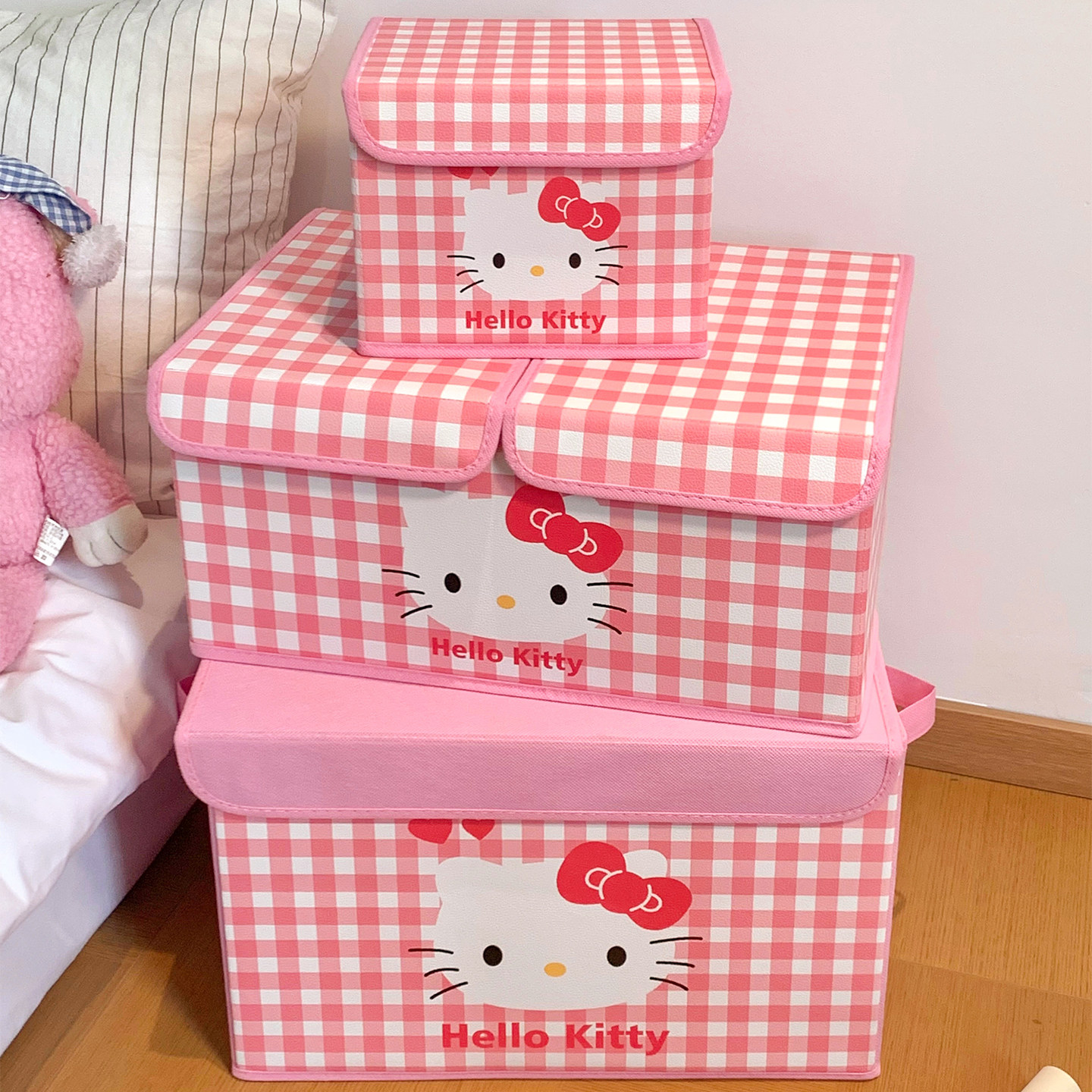 可爱格纹猫咪收纳箱家用带盖大容量内衣内裤袜子收纳盒女学生宿舍