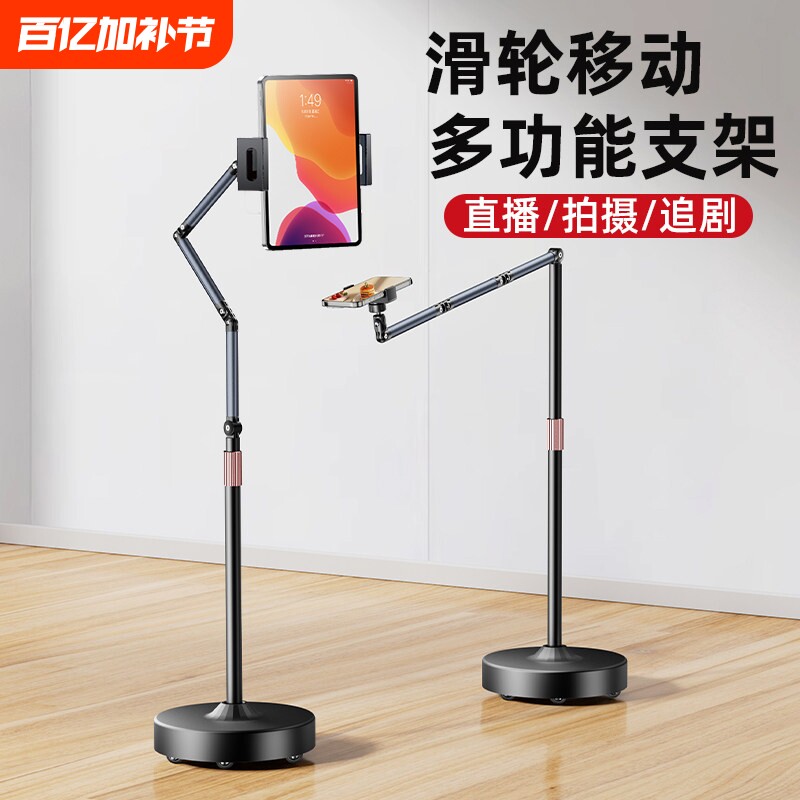 平板支架可移动滑轮手机支架磁吸多功能俯拍直播视频追剧看电视神器床头落地懒人悬臂支撑架iPad通用2026新款
