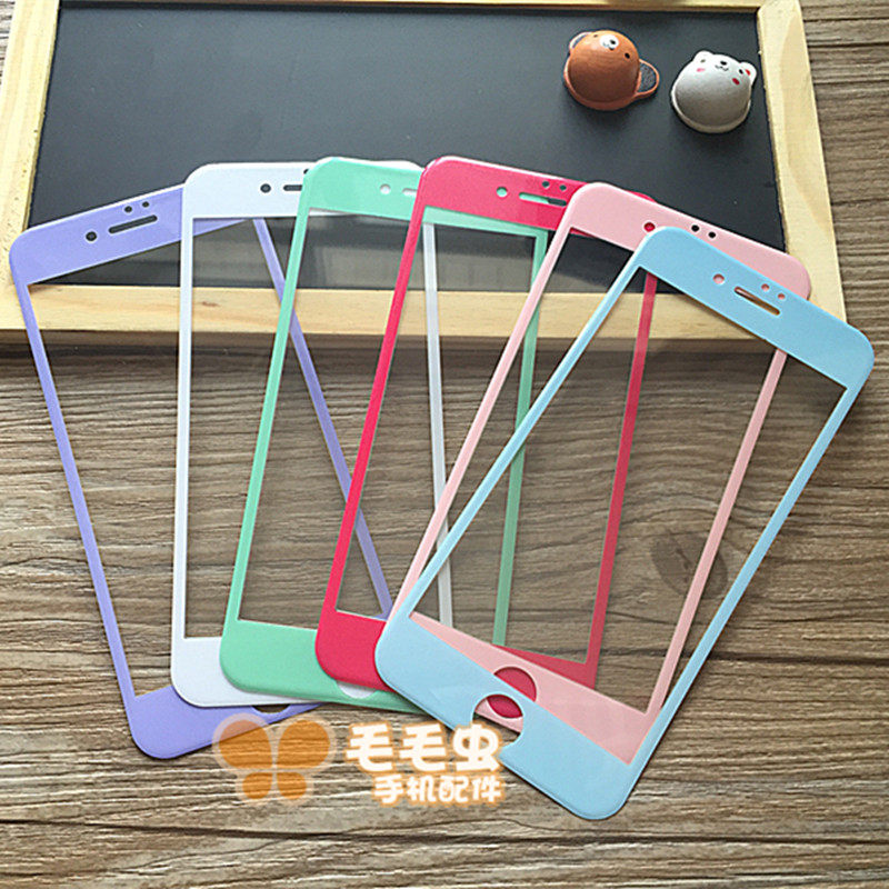 适用iphone7p/8plus全屏粉白蓝紫绿前钢化彩膜 苹果11/12玻璃膜XS