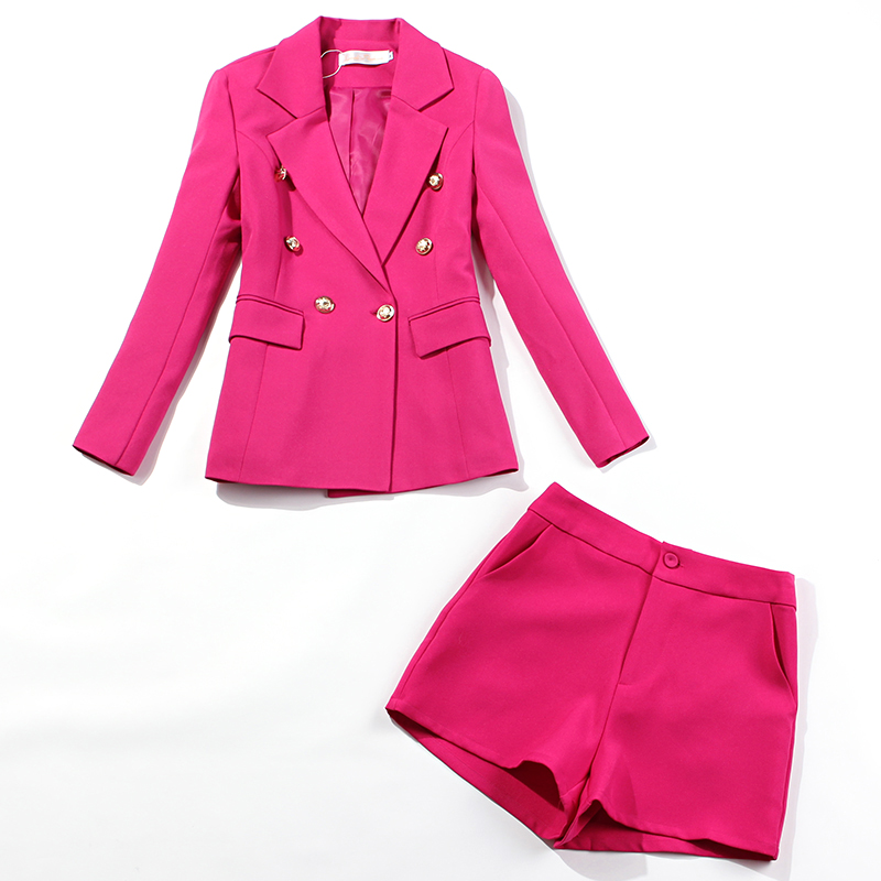 西装套装女2025新款网红韩版休闲小西服玫红色短裤时尚套装春秋