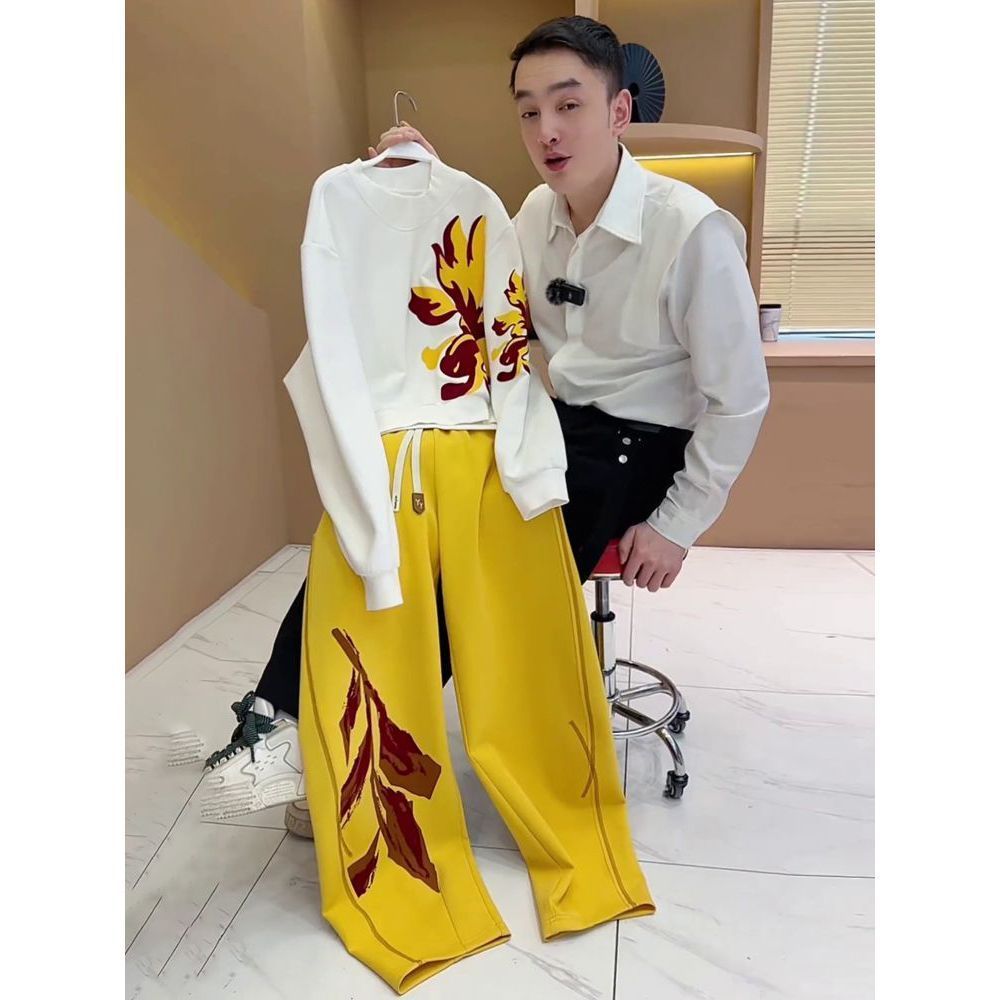 欧货休闲运动套装女2025新款春秋韩版宽松设计感印花阔腿裤两件套