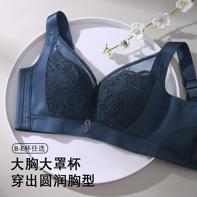 莹嫦文胸有钢圈蕾丝薄款B杯三排扣U型上托聚拢美背女大胸内衣395