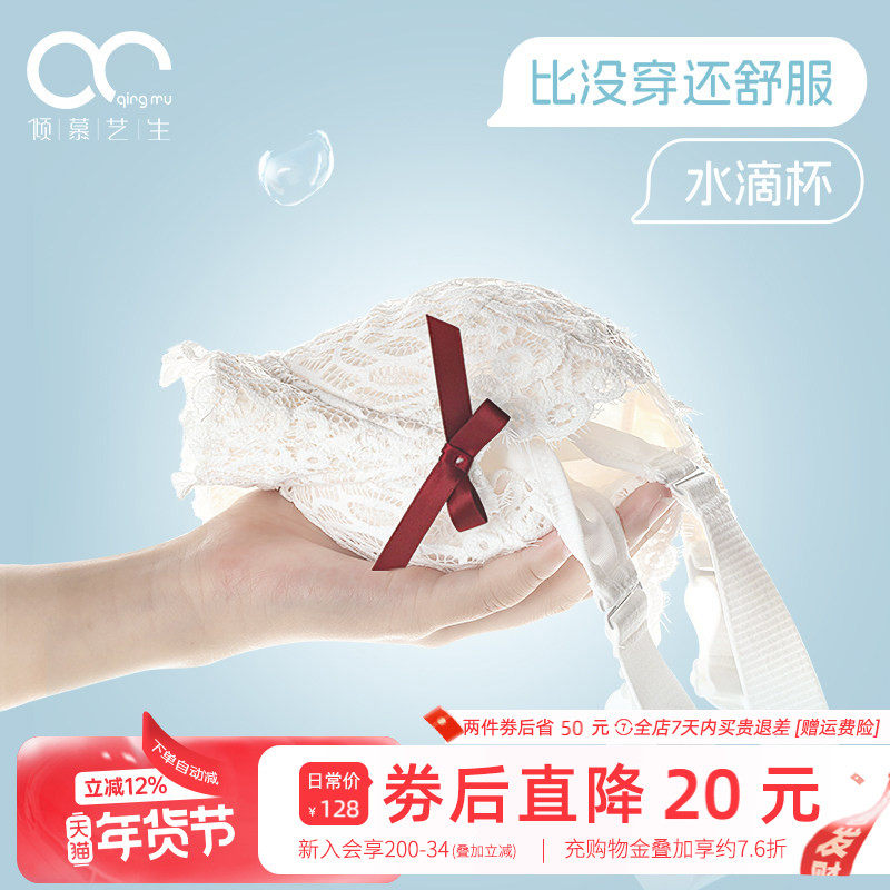 好奇蜜斯蕾丝小胸聚拢内衣女纯欲文胸罩套装大胸显小防下垂薄性感