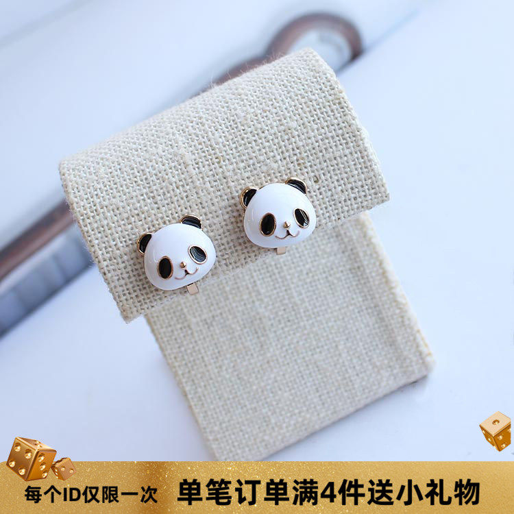韩国韩版精致可爱呆萌立体熊猫耳钉无耳洞耳夹女日韩简约清新耳饰