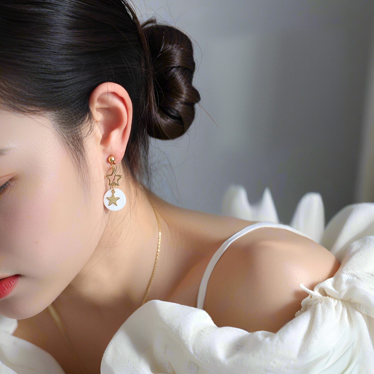 天然手工海贝包金耳夹无耳洞女韩国简约清新纯银针星星少女心耳环