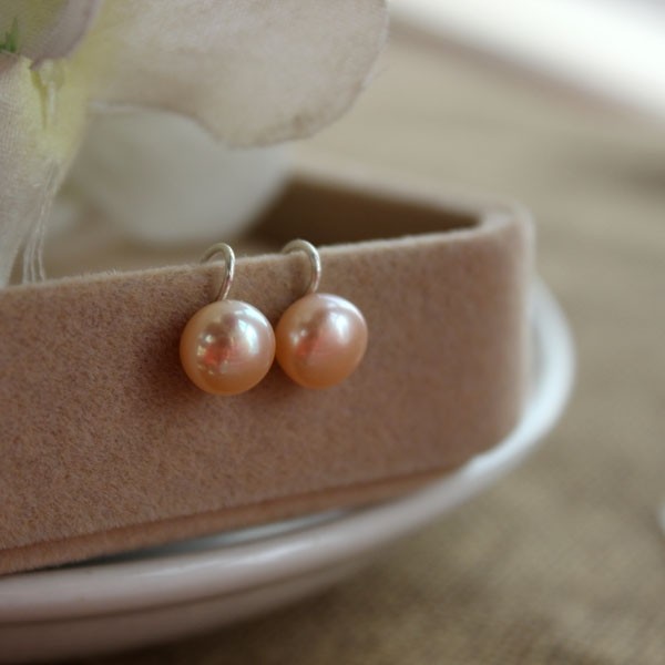天然淡水珍珠无耳洞蚊香盘耳夹 韩国简约清新橘色耳钉耳饰 妈妈女
