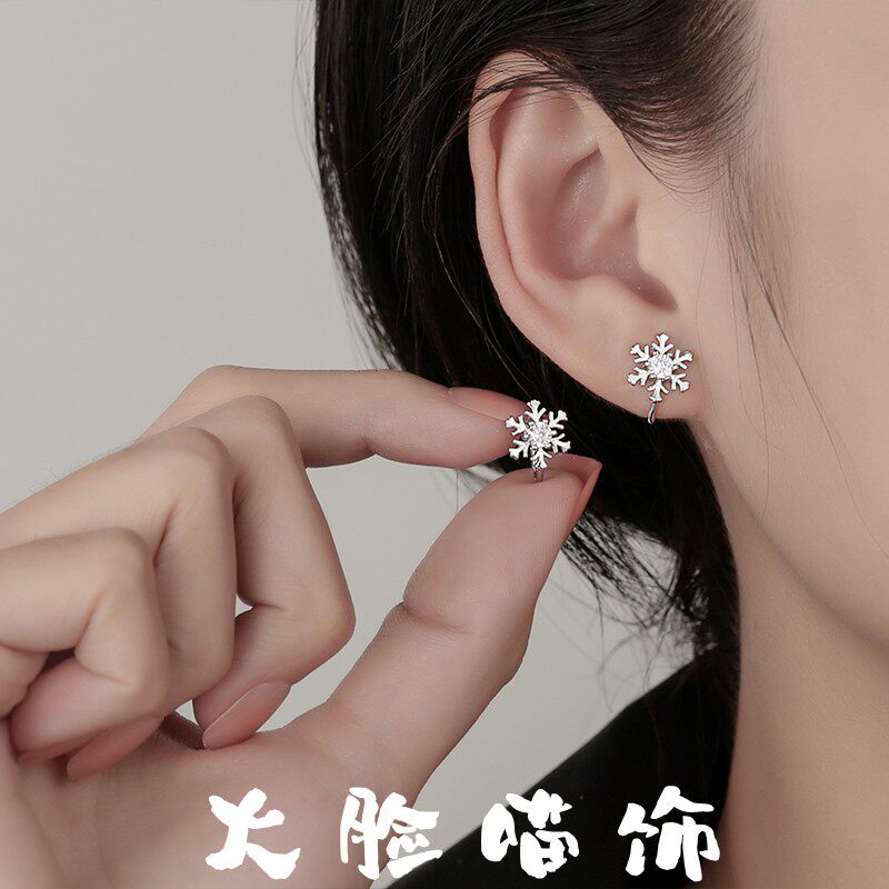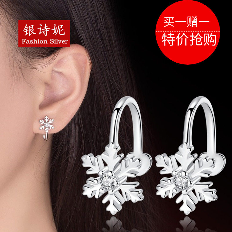 s925银针雪花耳夹无耳洞女韩国简约小清新学生耳骨夹百搭网红耳饰