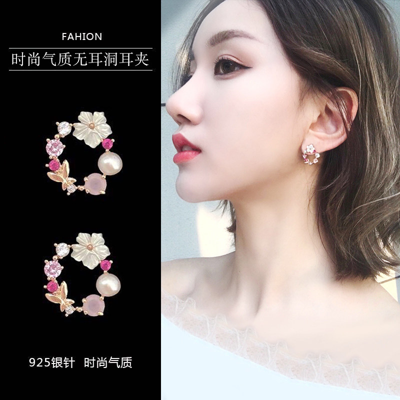 夏日无耳洞韩国简约清新珍珠花朵气质日韩潮人无痛耳夹女耳饰耳环