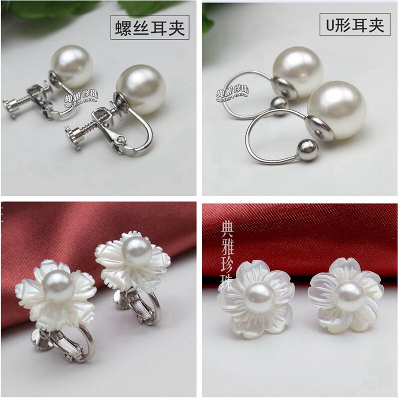 韩国925纯银珍珠母贝耳骨夹耳夹简约气质U形无耳洞清新耳扣耳饰女