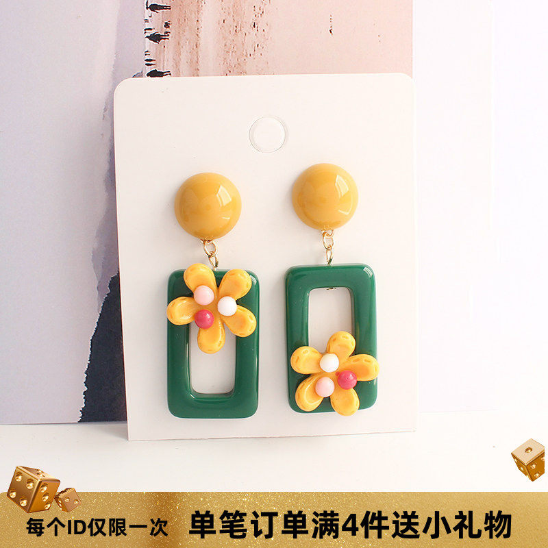 EXHIBITION览物馆 耳钉女韩国撞色小清新简约气质耳环无耳洞耳夹