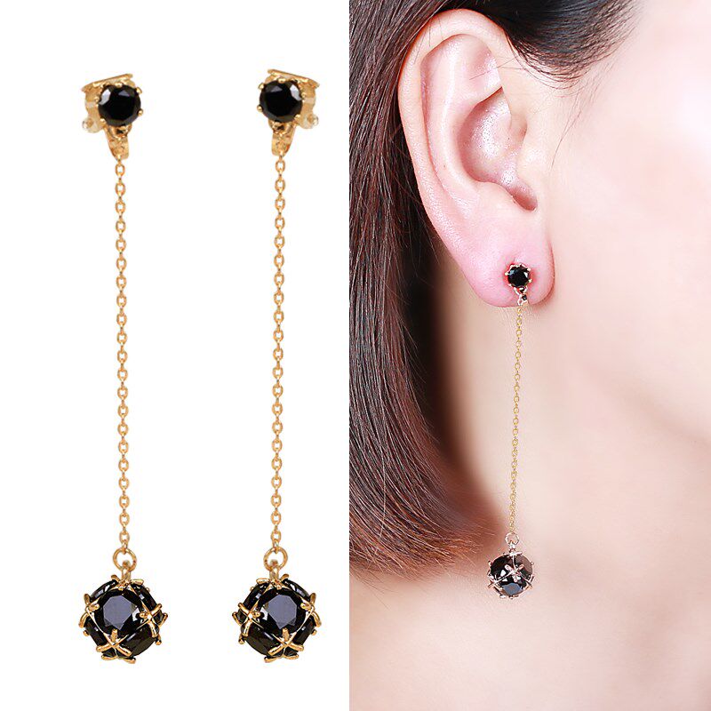 时尚长款流苏锆石耳夹无耳洞女韩国气质潮人超仙耳环简约清新耳坠