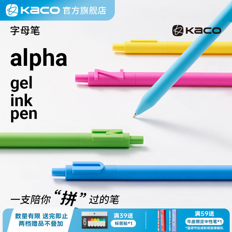 KACO字母笔数字笔学生用学习办公文具礼品彩色按动式中性笔黑色0.5笔芯可爱超萌少女心创意套装按动式