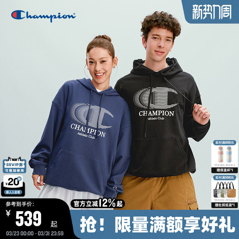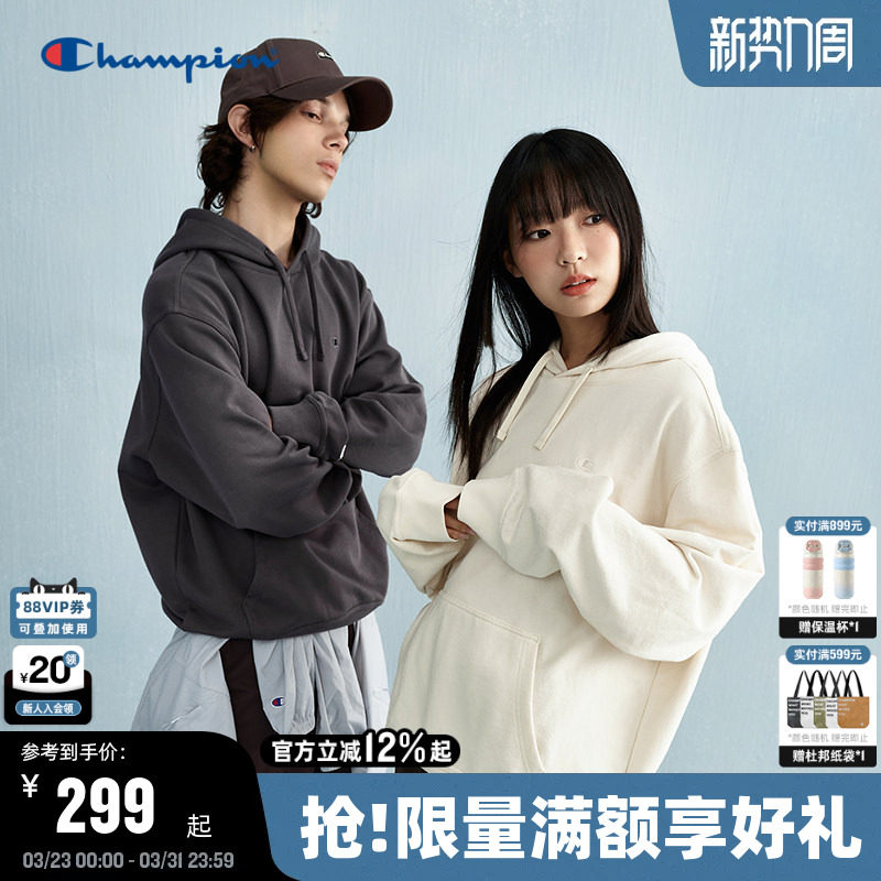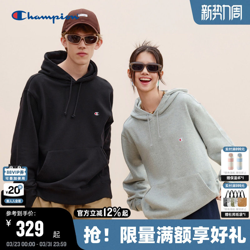 Champion冠军连帽卫衣男秋季新款刺绣上衣经典小C简约潮牌女纯色