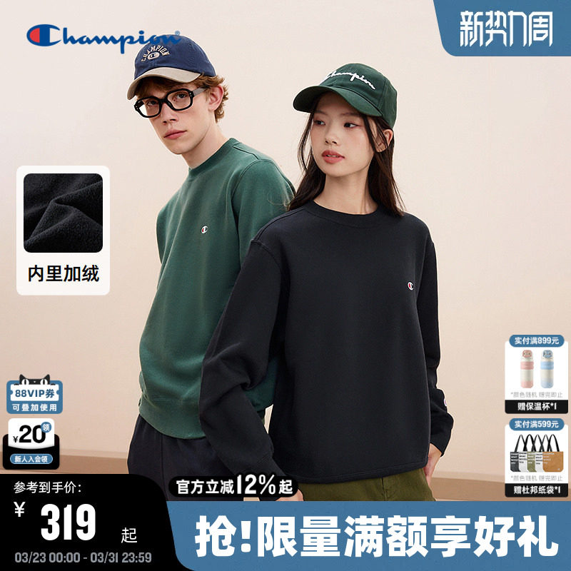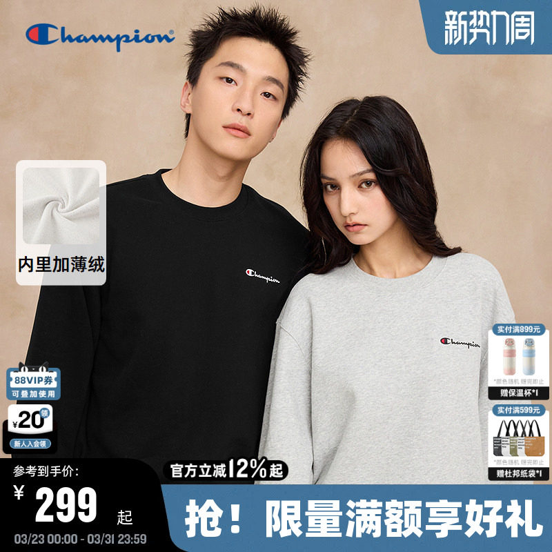 Champion冠军圆领卫衣男2025秋季新款经典款潮牌落肩上衣刺绣加绒