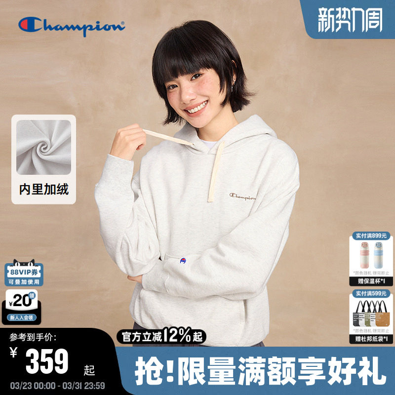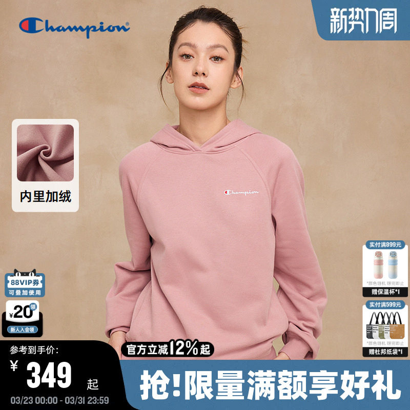 Champion冠军连帽卫衣女2025冬季新款加绒刺绣上衣潮牌休闲风简约