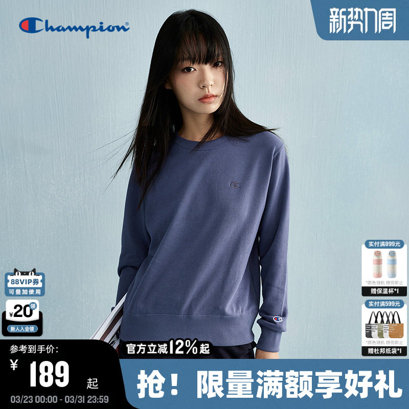 Champion冠军春秋新款简约纯色圆领卫衣女美式休闲套头上衣潮