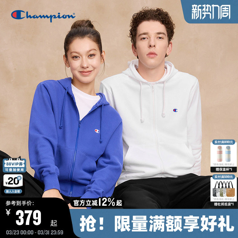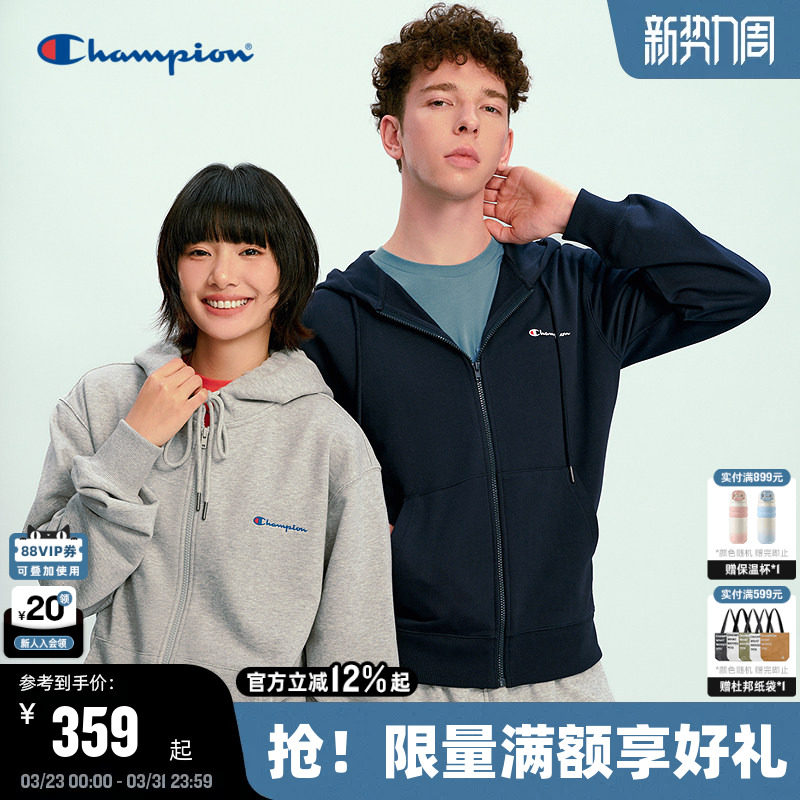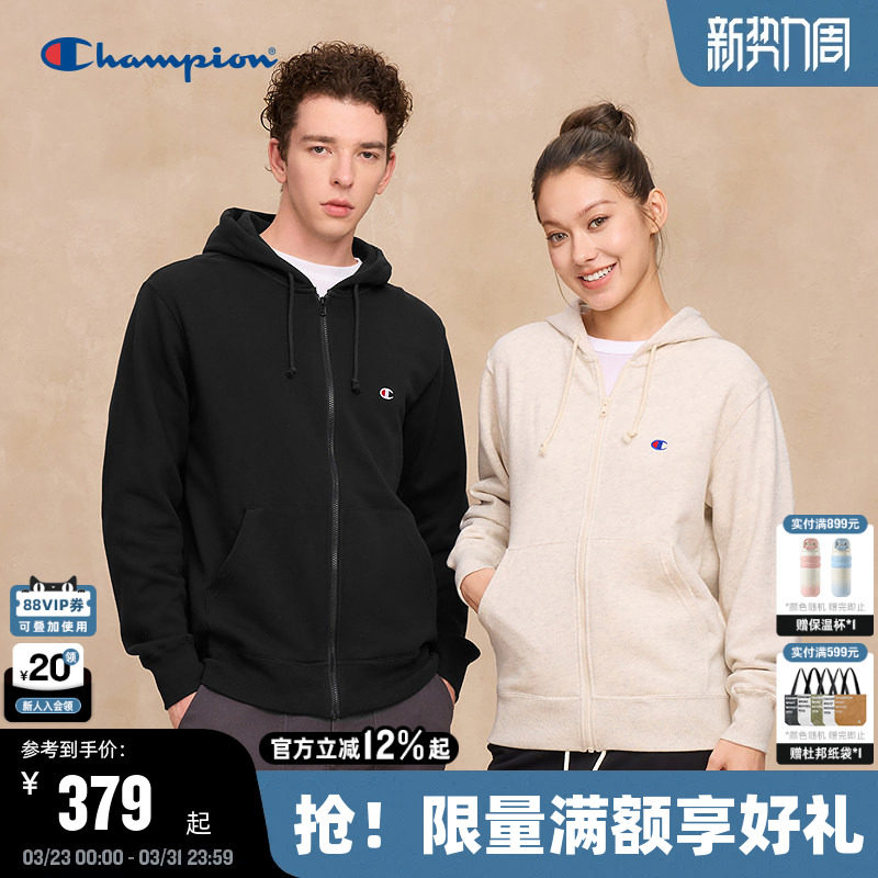 Champion冠军卫衣春秋款开衫连帽情侣春秋运动拉链外套简约休闲