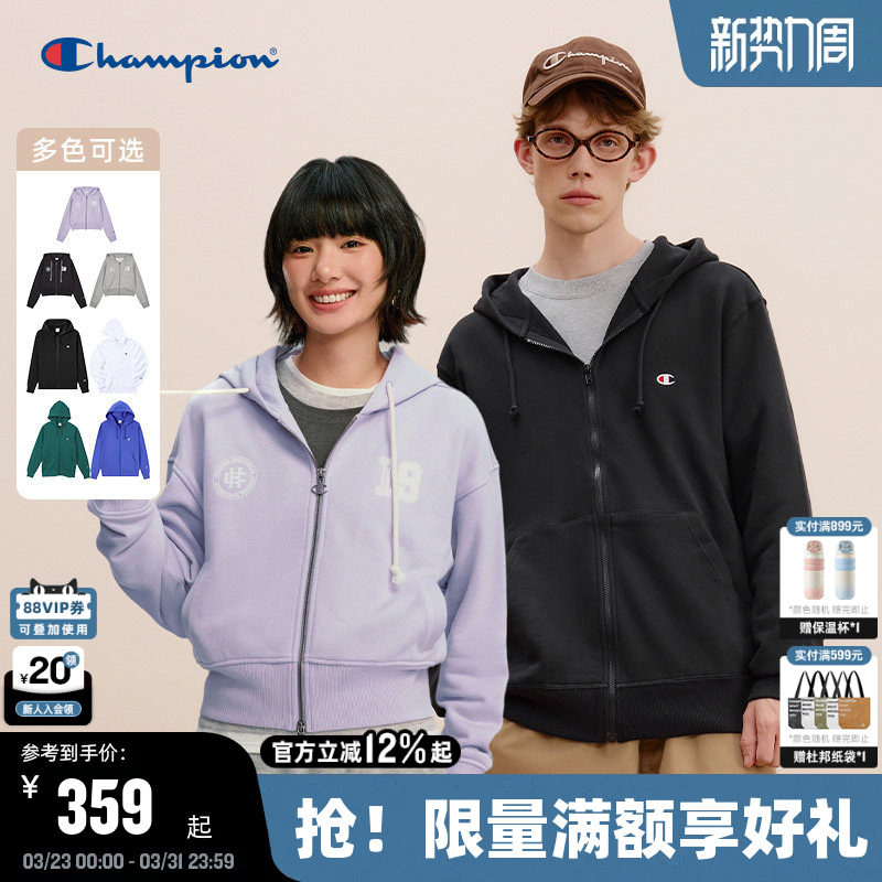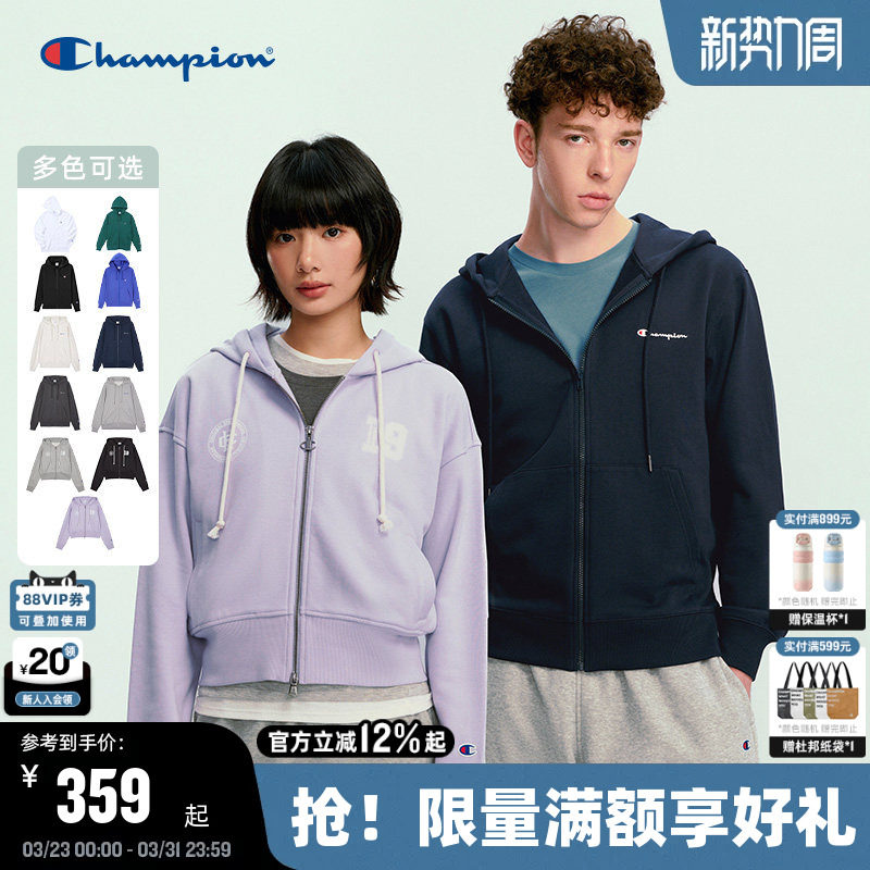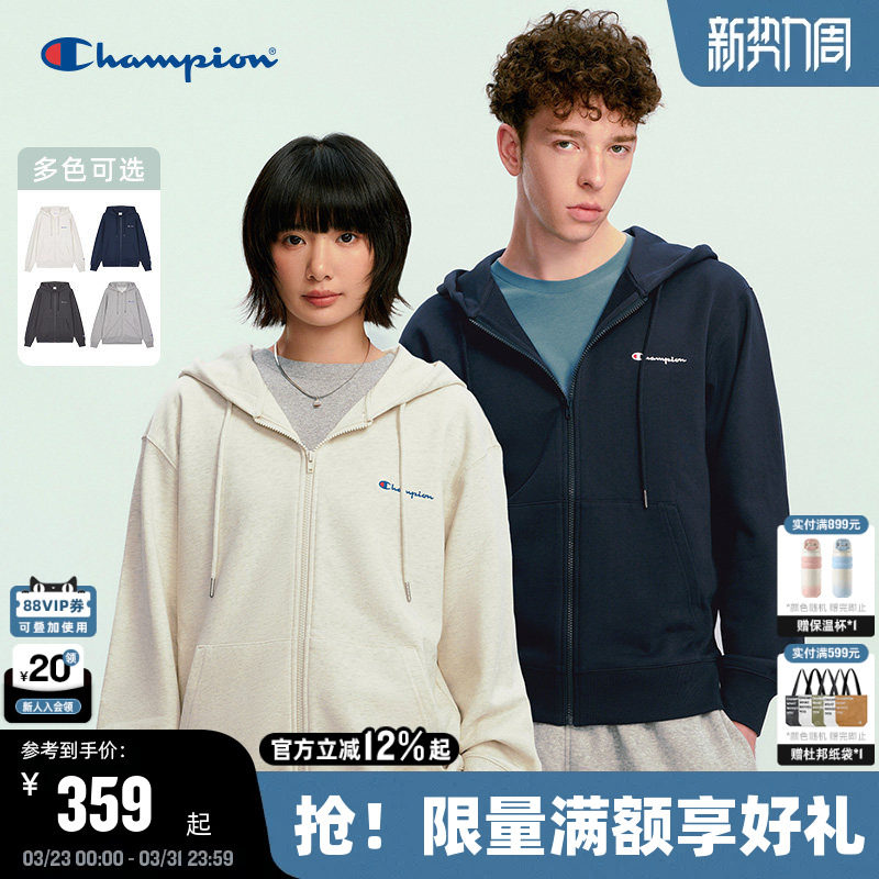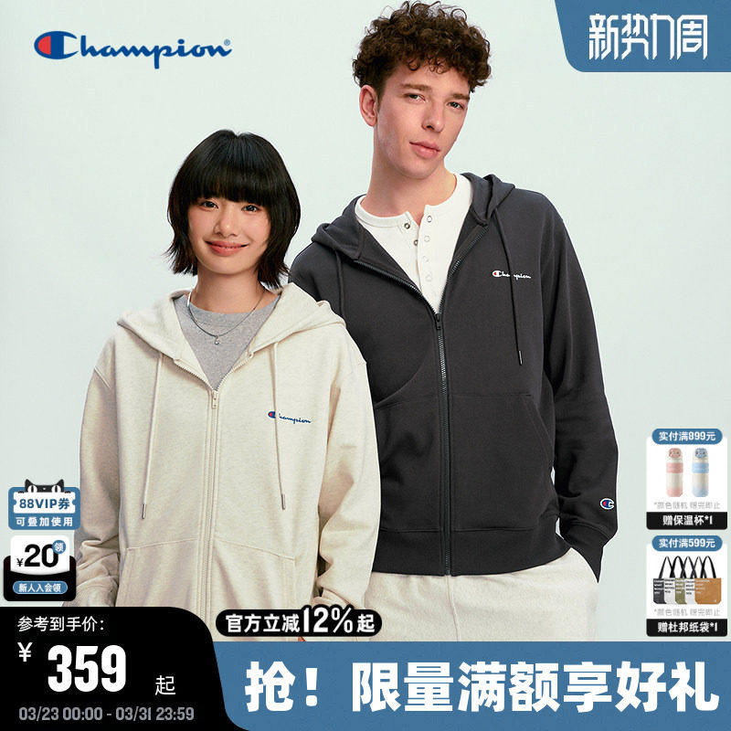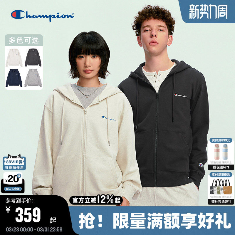 Champion冠军情侣卫衣外套春秋款刺绣连帽拉链开衫女简约韩系休闲