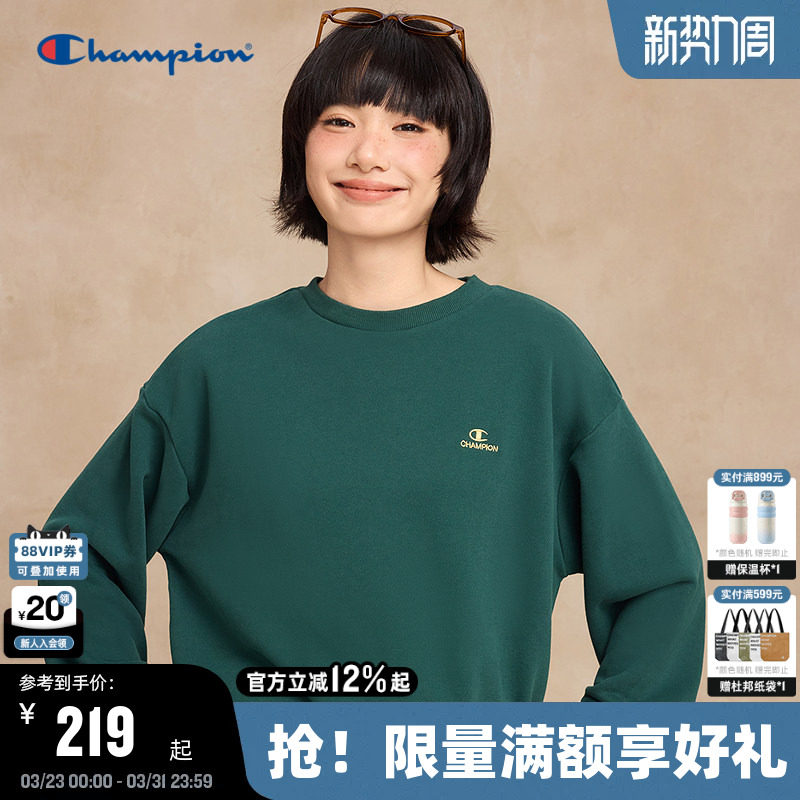 Champion冠军圆领卫衣女2026春季新款纯色简约logo打底上衣时尚潮